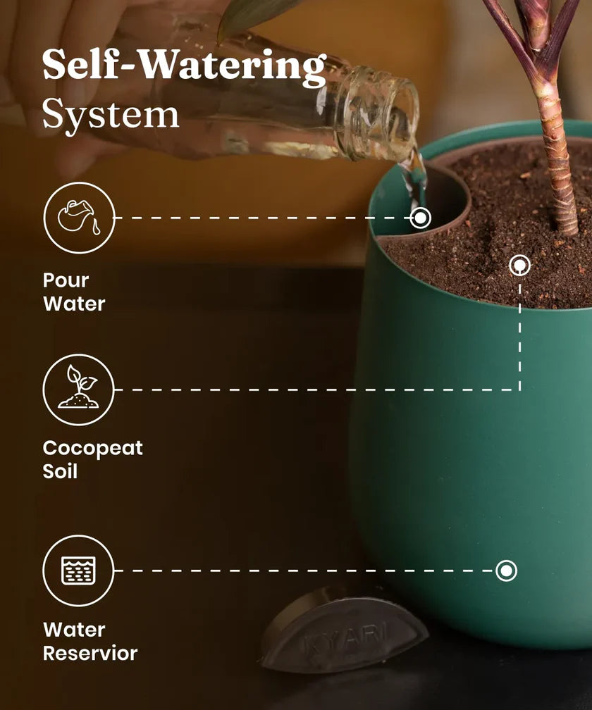 Self-watering planters use a built-in reservoir and wick to provide consistent moisture to plant roots, reducing manual watering and preventing root rot. This design ensures healthy, lush plants with minimal effort, ideal for busy individuals.