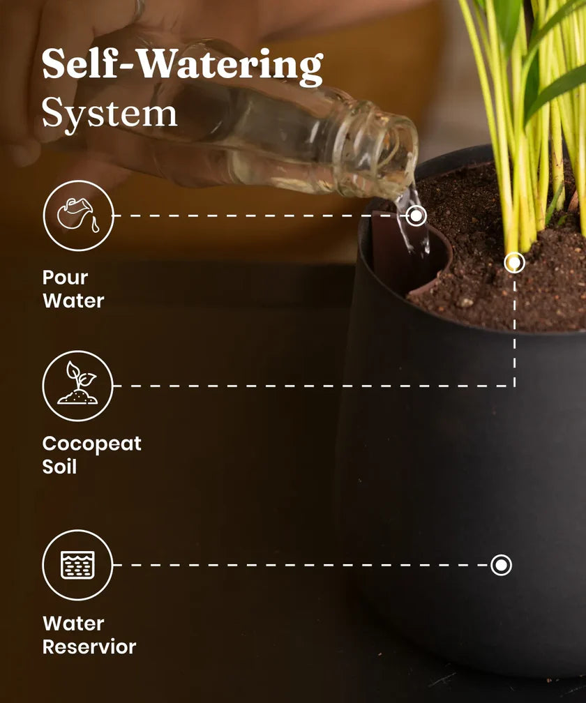 Self-watering planters use a built-in reservoir and wick to provide consistent moisture to plant roots, reducing manual watering and preventing root rot. This design ensures healthy, lush plants with minimal effort, ideal for busy individuals.