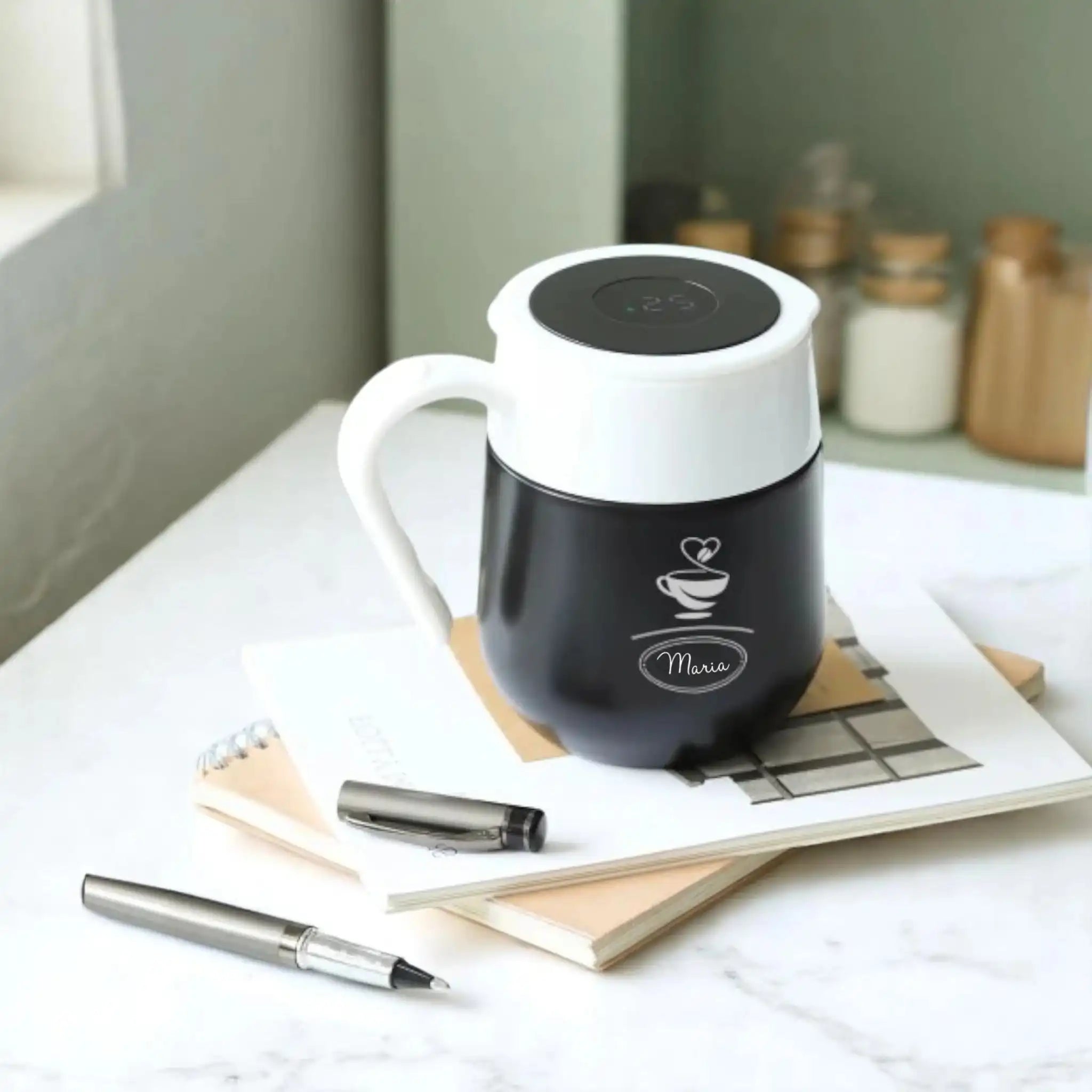 Smart, stylish, and functional. This digital temperature mug displays real-time heat and keeps drinks warm for hours. Add a name to make it a premium, tech-friendly gift.