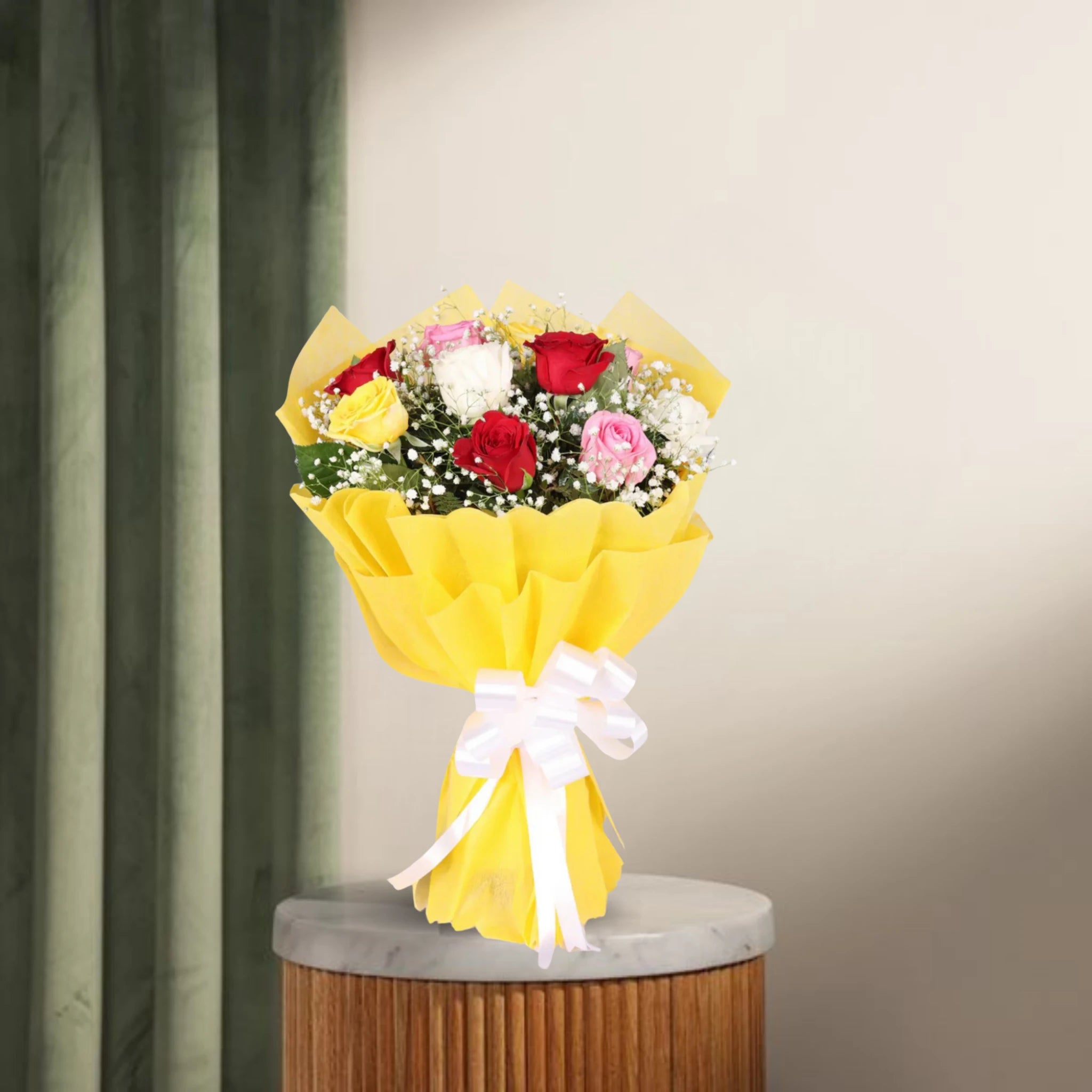 A graceful bouquet of assorted roses, beautifully arranged to reflect joy, love, and admiration. This charming bunch is perfect for birthdays, celebrations, or just to make someone smile.