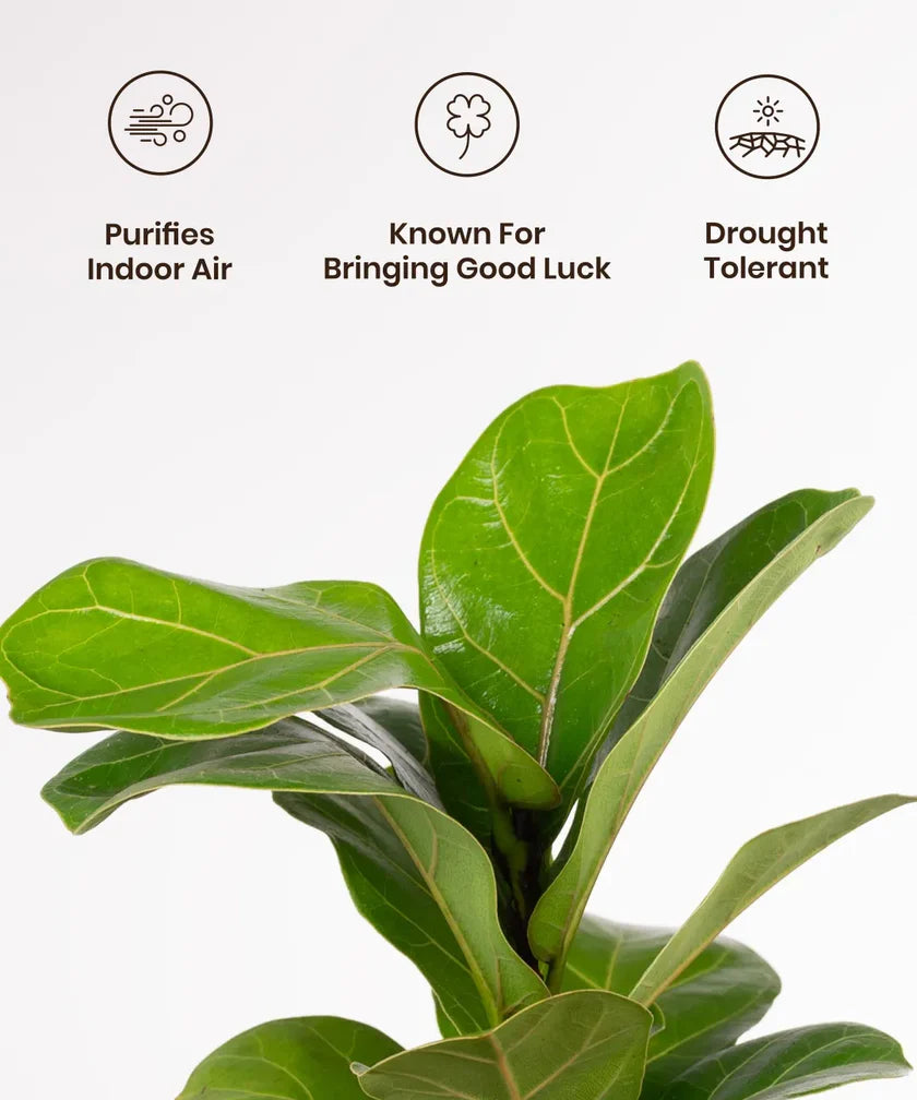 The Fiddle Leaf Fig is a standout choice for its bold, dramatic leaves and ability to thrive indoors. It's perfect for those looking to make a stylish statement with their plant selection. The Fiddle Leaf Fig helps purify the air by removing toxins, making your indoor environment healthier and more enjoyable, making it a perfect addition to your home or office décor.