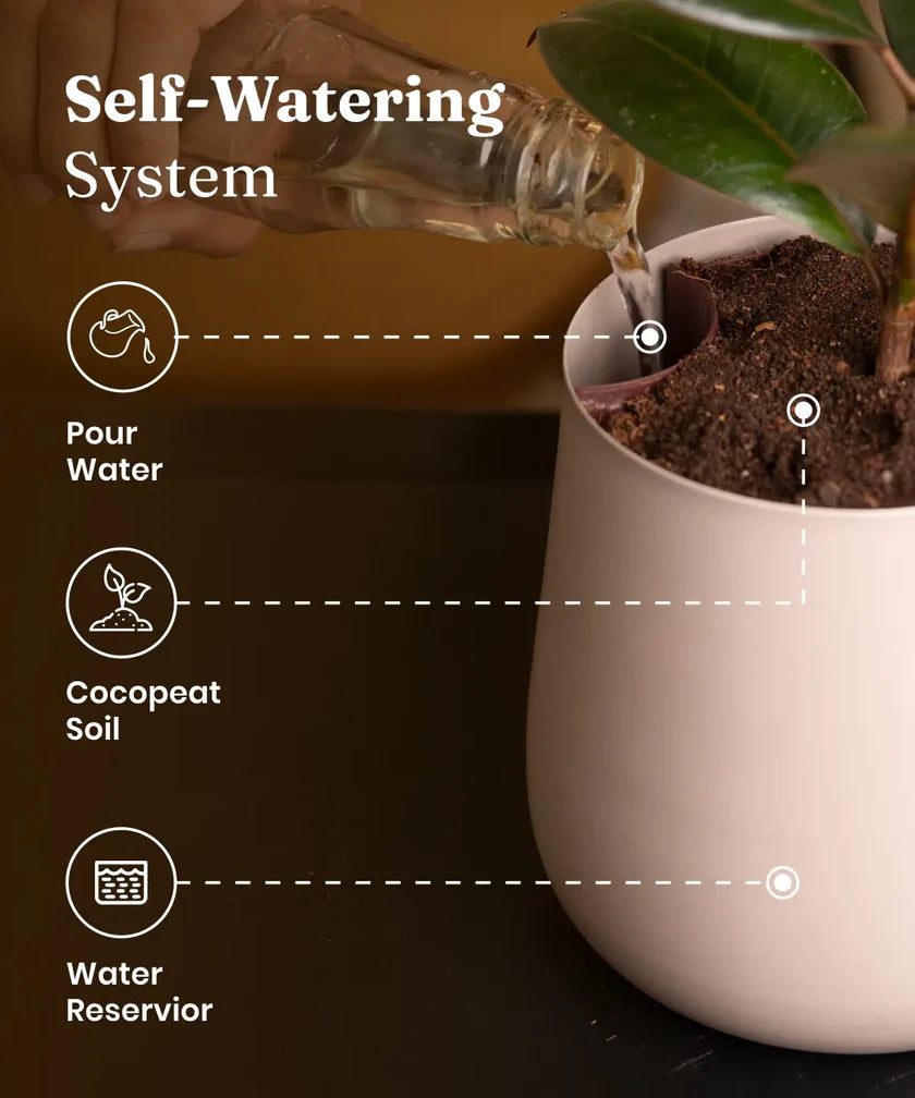 Self-watering planters simplify care by providing consistent moisture, preventing overwatering and underwatering. Ideal for busy or novice gardeners, they promote healthy growth for indoor and outdoor plants. Experience the ease of plant care with Kyari's planters.
