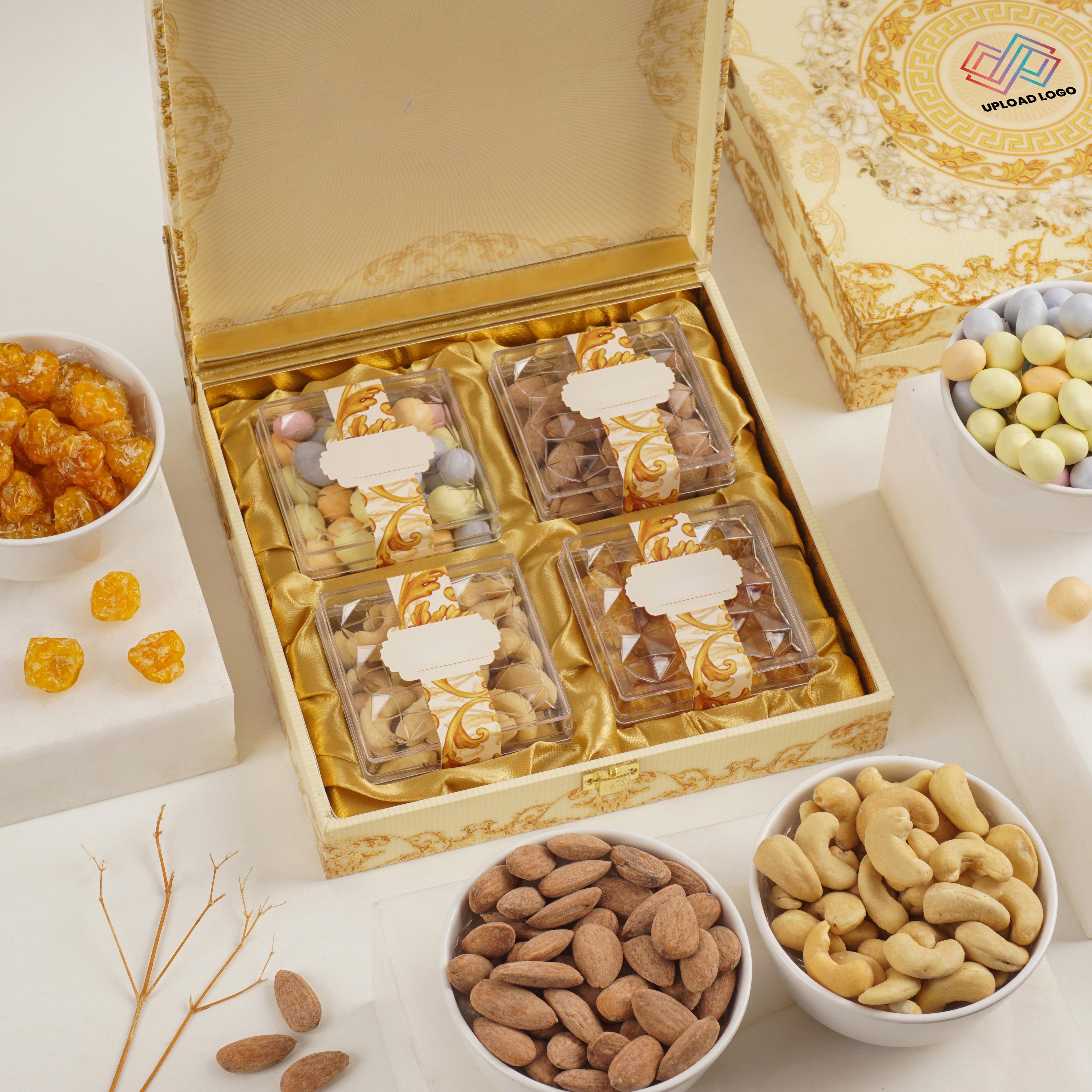 This hamper is crafted for the health-conscious, offering a selection of wholesome treats. Enjoy the natural goodness of cashews and almonds, paired with the delightful crunch of berries and dragees in every bite. Perfect for corporate gifting, you can personalize the box with your brand logo, making it an ideal Diwali gift for clients, channel partners, and employees. Share the gift of health and prosperity this festive season while strengthening business relationships.