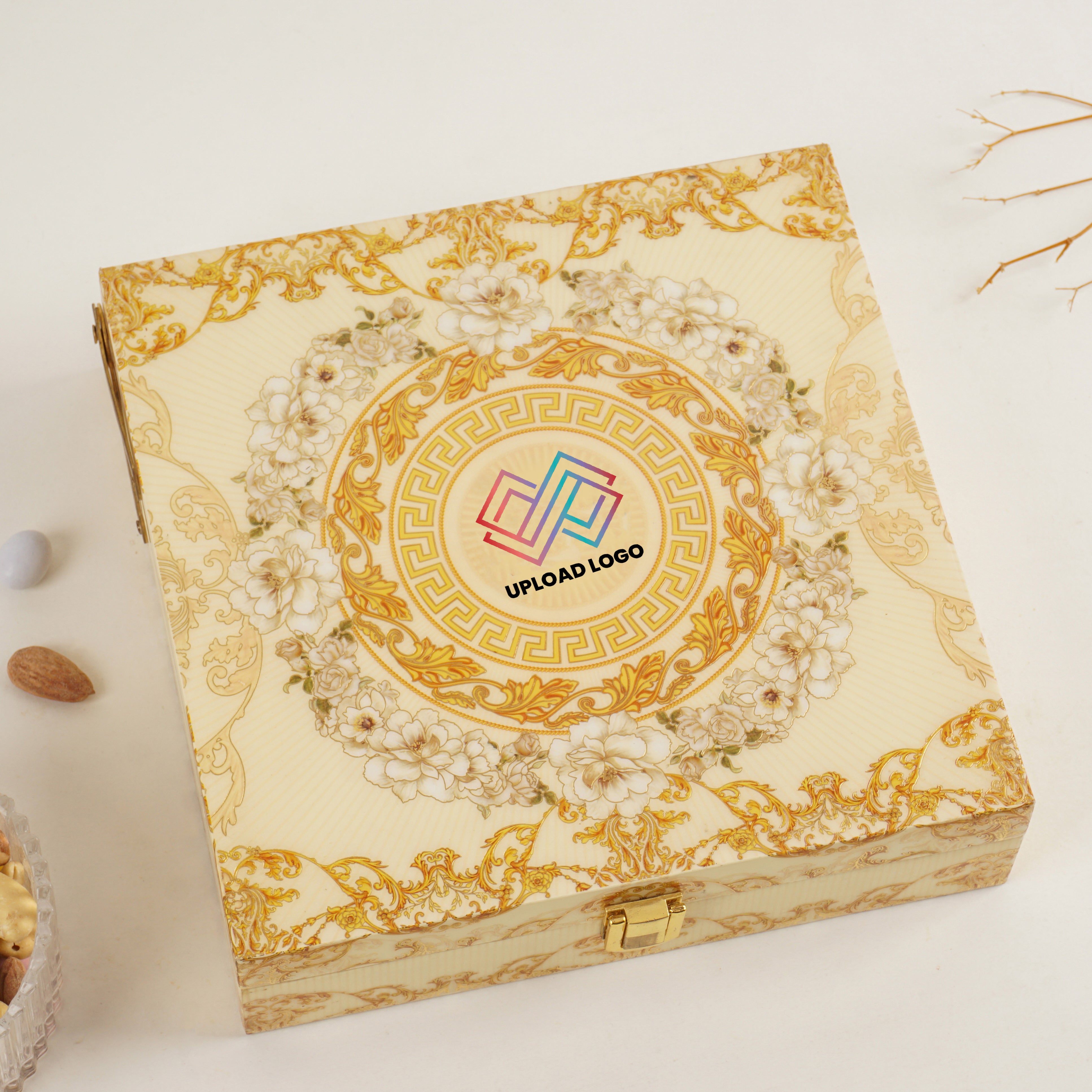 - Golden Lacquer Box (Size : L: 8" in- W: 8" in- H: 2" in)