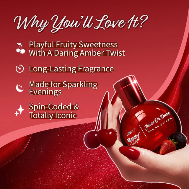 Turn heads with Juice Or Dare Eau de Parfum, a bold and playful fragrance bursting with fruity allure. Juicy notes of strawberry and cherry create a vibrant, mouth-watering opening that feels fresh and flirty. The scent settles into a smooth, addictive blend that’s perfect for evenings and special moments. Long-lasting and expressive, it’s designed for those who love making a confident statement. Packaged in a striking bottle, this perfume is ideal for anyone who enjoys fun, daring, and irresistible fragrances.