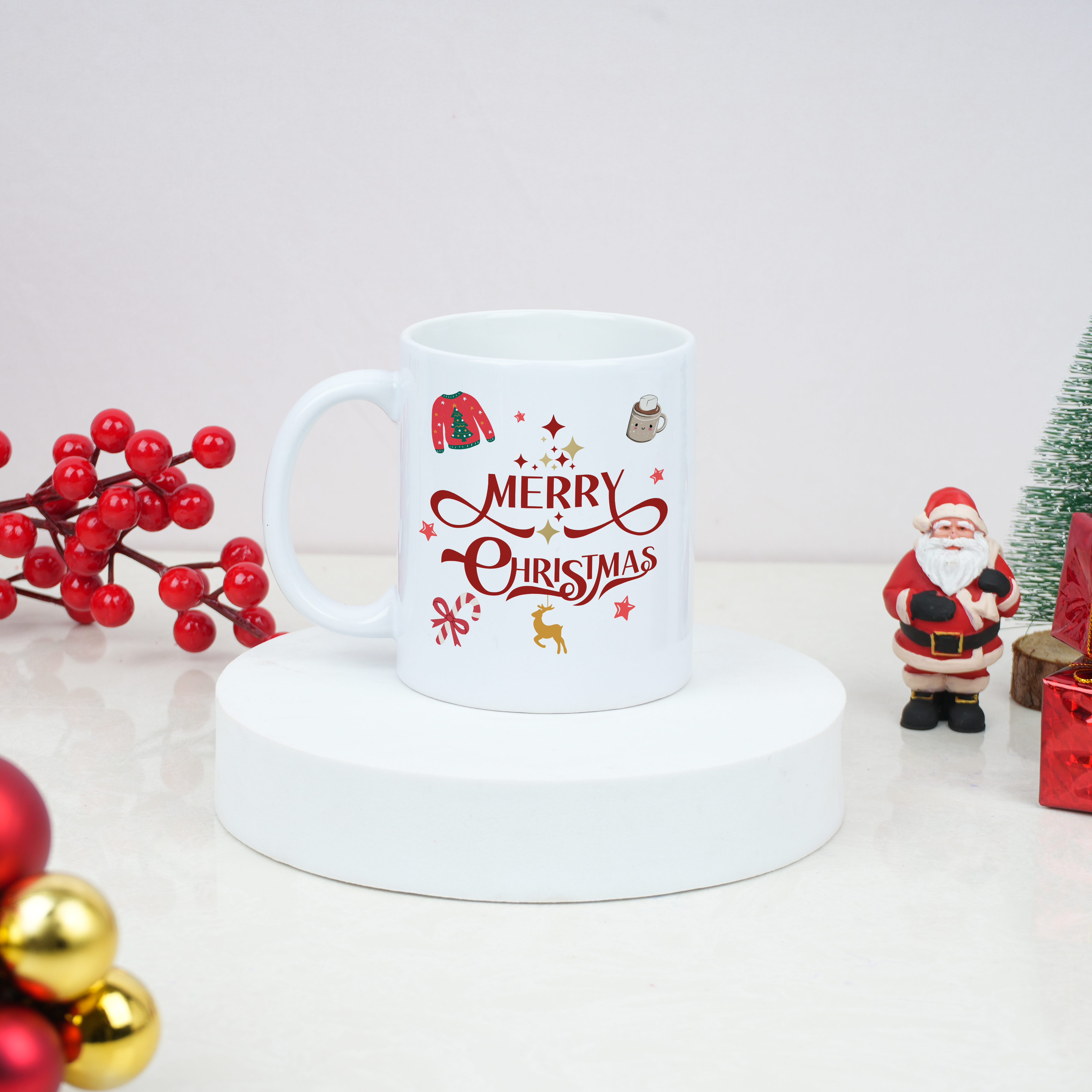 A festive drinkware piece designed with a charming Merry Christmas graphic. Perfect for cozy winter beverages. A thoughtful pick for holiday gifting.