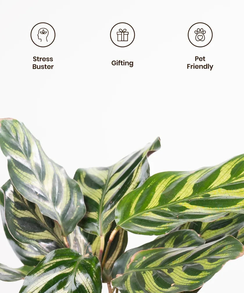 The Peacock Plant is a stunning addition to any indoor environment, famous for its vibrant, patterned leaves that resemble the beauty of peacock feathers. Its unique and eye-catching foliage makes it a perfect choice for plant lovers looking to infuse an exotic flair into their space.