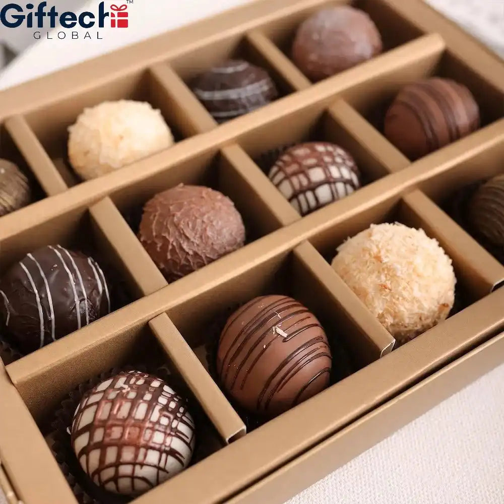 A box full of bliss for the true chocolate lover. This Special Truffle Collection features 12 handcrafted chocolates in a rich mix of flavors — from classic coffee and nutty bites to the unique twist of cardamom and coconut.